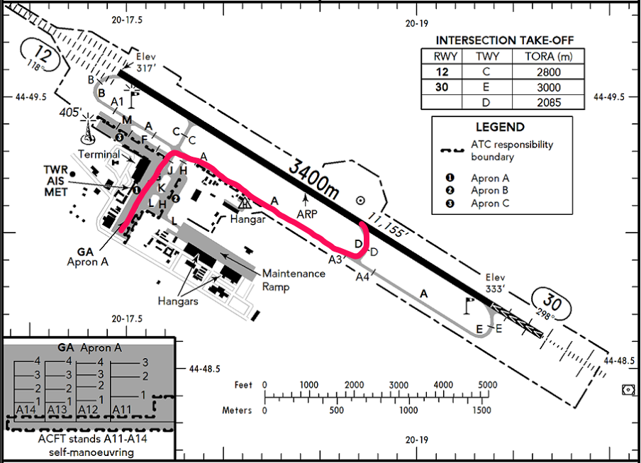 After some thunderstorms and precipitation on Sunday night before our departure, we woke up to cloudy (at 2000 ft) but dry weather. The departure out of Belgrade was as easy and straightforward as the arrival. I needed to fill in some forms at the General Aviation Terminal. We spent some time there checking the weather for our route to Croatia, filing the mandatory flight plan, and finishing our breakfast (which the hotel had packed in bags for us). We were then driven to the airplane by the handling agent, who I also settled the final bill with, while Arvind began to load our luggage into the Cessna again. After running the preflight checks (it's handy to have a regular passenger. Arvind by now knew more or less when to hand me what, e.g. a checklist) and listening to the ATIS, we requested taxi clearance for runway 30. We were cleared to taxi to holding point D via taxiways G, A from our parking position at Apron A. The airport was pretty busy (not surprising on a Monday morning) and before maneuvering on A, we were asked to give way to a departing Air Serbia flight from Apron B.