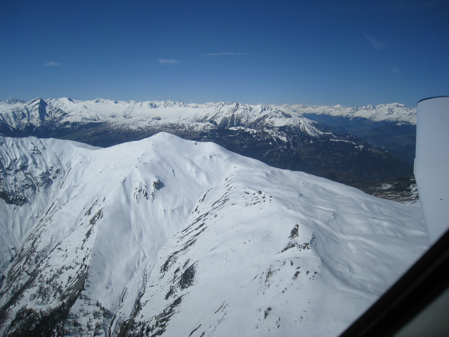 After some flying in the Alp valleys (don't forget to leave enough space to be able to turn back and always check a valley to be free of clouds before entering it) and several ski resorts like Lenzerheide we cross the mountains over Albulapass. Approaching the pass you have the feeling that there is no way ahead because you actually don't see it. It opens up just a minute before you fly over it making this a possibly scary moment for somebody without mountain flying experience.